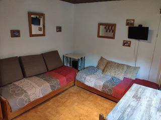 Dans un ensemble de 4 chalets, loue un studio au rez-de-chaussée à 50 mètres du télésiège qui rejoint la station Hirmentaz. - pièce principale avec coin-cuisine comprenant 4 plaqu