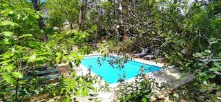 La villa se situe dans un quartier résidentiel calme du Cap d'Antibes. Jardin méditerranéen ombragé 640 m². Les plages sont à 5 mn à pieds (La plage du Croûton par exemple, au