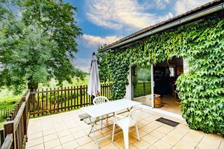 Maison plain-pied, environ 80m2, cuisine séjour, 2 chambres, salle de d'eau et wc ( à part) . Terrasse, salon de jardin, terrain clos, accueil véhicules et bicyclettes sur propriét