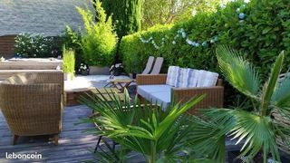 Dans villa avec jardin arboré et clôture apparts indépendants à louer, 350 m plages et commères. 1 haut de villa grande terrasse 5 couchages 1 rez de jardin 4 couchages 1 stud