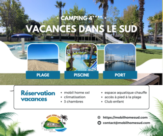 JOLIE MOBIL HOME DE 36 m2 CLIMATISE très agréable 6 PERSONNES 3 CHAMBRES dans village club LA BAIE DES PIRATES au sables d or 4 * a AGDE piscine a vagues toboggans pataugeoire pour