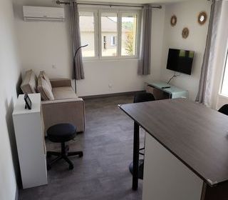 dans le très joli village de aujols, près de st cirq lapopie, plus beau village de france, ce gîte de 40M2, vous permettra de vous reposer au calme et de visiter le lot, l'aveyron,
