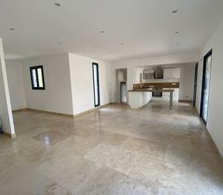 Maison à pougnadoresse (15 minutes Uzes) 3 chambres une de 17m2, 12m2 et 10m2 + grande pièce à vivre avec climatisation réversible + cuisine non équipée d'une surface 45m2 très ens