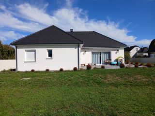 Location VILLA proche de toutes les commodités ; entrée, WC, cellier ; cuisine aménagée donnant sur salle à manger et salon (côté terrasse), 1 chambre avec suite parentale, 2 chamb