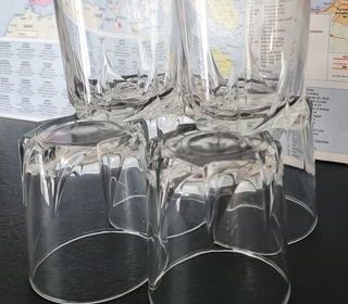 12 + 14 (soit 26 en tout) Verres Blancs transparents à Whisky, larges et légèrement épais de 2 TYPES, ou styles, légèrement DIFFÉRENTS au niveau du pied surtout ; ?? Disponibles s