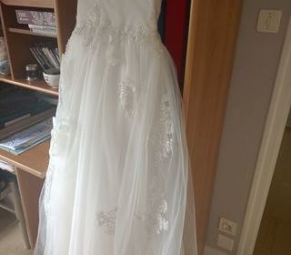 magnifique robe de cérémonie taille 8ans ans servi un après midi colorie blanc cassé écru dentelle, tulle avec bretelles valeur neuve 99€