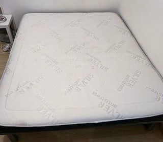 vends lit 2 personnes avec 2 tables de nuit un sommier et un matelas en bon état le lot peu être vendu séparé