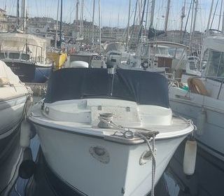 Bateau polyester 2,4m x6,50m Avec bâche de protection etanche Équipement de navigation Moteur MERCRUISE 4.3 L de 2019. Moins de 200h