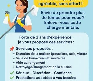 Bonjour, vous cherchez quelqu'un pour l'entretien de votre logement. Vous emménagez ou vous déménagez et une remise au propre est nécessaire. N'hésitez pas à me contacter. J'interv