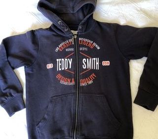 Gilet sweat à capuche taille 12 ans, de marque Teddy Smith Bleu marine 60% coton et 40% polyester Excellent état Largeur épaules 36cm Largeur aisselles 45cm Longueur manches