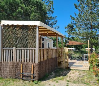 Mobil home situe dans un camping 4* à Lege Cap Ferret - Année 2022 - En parfait état. Situé proche des commerces et de la piscine, en bord d'eau, disposant d'une grande terrasse.