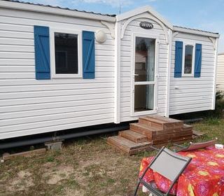 Je vend mon Mobile-home 6P IRM très bonne état (2 chambre) salon élément de cuisine, canapé convertible avec toilettes séparée et terrasse refaite en 2024 Camping 5* a Equemeau