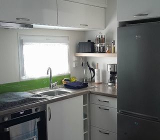 Vends mobil-home Rapidhome type VP 102. Equipements : MAL Electrolux 6kg LV Sharp 12 couverts frigo congélateur plaque 4 feux à induction four mixte chauffage électrique dans
