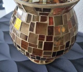 vend vase en verre avec décoration mosaïque