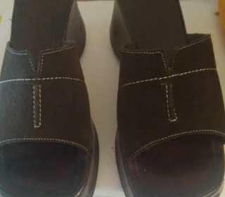 Sandales compensées femme ? cuir marron, pointure 37 Élégantes et confortables, ces sandales en cuir marron avec surpiqûres sont parfaites pour la saison printemps-été. - Poi