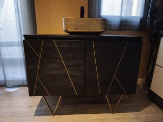 Meuble salle de bain en bois de Manguier 2 portes 1 vasque 1 robinet Dimension 100