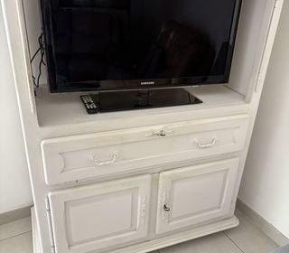 table de nuit ancienne peinte en vert avec motif liere beige, dimensions h85, l40, p35cm environ, pas d expédition , la prendre à Montpellier