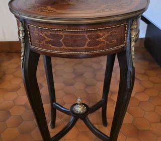 Ancien Guéridon sellette style Napoléon III table bout de canapé Marqueterie bronze PAS D ENVOI H77 cm Diamètre 45 cm Il est en très bon état Louis xv Louis xvi