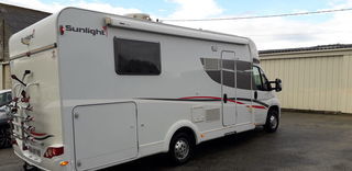 Fiat ducato 2.3L 130 CV Carrosserie aluminium Puissance fiscale 8 CV 5 places CG , 5 places couchage , lit central +lit pavillon Store extérieur, panneaux solaires, porte vélos,