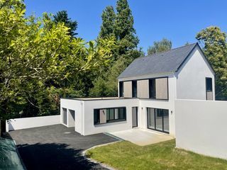 Maison contemporaine vue mer lumineuse située au calme dans un environnement naturel d'exception. Au rez de chaussé : Un hall d'entrée donnant sur une grande pièce de vie : cu