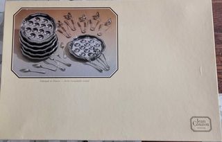 Services à Escargots Jean Couson. Composition : - 6 plateaux à Escargots - 6 fourchettes à Escargots - 6 pinces à Escargots - 6 douzaines de coquilles à Escargots.