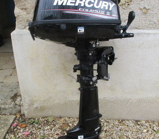 moteur de bateau hors -bord de marque Mercury . très peu servi , seulement 20km arbre long 4 temps 5cv moteur révisé en Aout 2025 comme tous les ans et mises a niveau faites par u