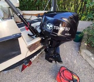 Moteur Tohatsu 20 cv de fin 2021 (facture) en excellent état. Arbre court barre franche, démarrage et trim manuel. N'a naviguer qu'une trentaine d'heures uniquement en eau douce. L