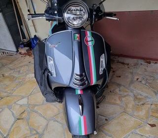 VESPA, 300 Cm3 , Essence 4 temps, 2022, 9850 Km , 4 CV , 4400 €. En parfait état, aucune bosse ni de rayure. Révision complète à 8200 kms Kilométrage évolutif. Vendu avec le tabl