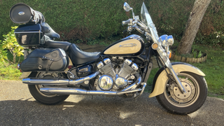Moto à cardan , bicylindre en V, très coupleux idéal balade. Freinage et fourche issus de la R1, transmission issue de la tdm, moteur issu de la dragstar. Très agréable à conduire