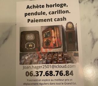 Bonjour je rachète au meilleur prix tout type d?horloge comtoise, Carillon Westminster, pendule, horloge de parquet. Paiement en espèces et déplacement dans toute la région du Gran