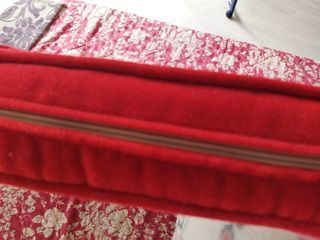 Tête de lit en Velours rouge, Déhoussable par fermeture. très bon état fait main Dimension: Hauteur 63cm et longueur 1,46cm