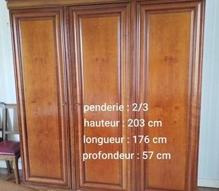 Vends armoire état neuf, bois massif. Acheté chez Meubles Jean Gorin - Redon Dimensions sur la photo du meuble Proposée démontée.