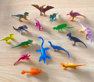 16 figurines dinosaures totalement neuves (doubles d'une collection). Idéal pour des lots de chasse au trésor, de cadeaux d'anniversaire? ou tout simplement pour les collectionner