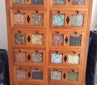 Meuble artisanal composé de tiroirs très profonds en bois de palissandre de Madagascar et d'ébène. Chaque tiroir est agrémenté de pierres demi-précieuses ( véritable fortune rien q