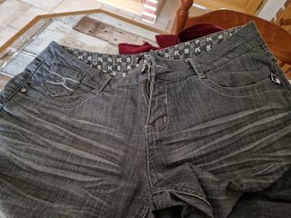 Jean Morgan gris. Noté xxl mais c'est plus du xl. Excellent état Brillants sur les poches arrières Petite déco à droite devant