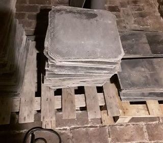 Canapé d'angle en velours marron/écru composé de deux banquettes de 2 M de long. Elément droit (contre le mur sur la photo) : profondeur de l'assise sans dossier : 80 cm et accolé