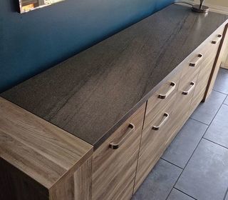 Commode hauteur 81 largeur 97 profondeur 40cm,5 tiroirs et 2 portes latérales.