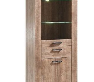 Vitrine moderne en bois effet chêne avec éclairage LED et étagères en verre Dimensions : ? Hauteur : 1,93 m ? Largeur : 71 cm ? Profondeur : 45 cm État : En bon état, prop