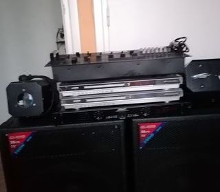 Sono-ampli-bravy am150 (2 x 100w 8 ohms ou 2 x 150w 4 ohms) table de mixage ssm--2100 Realistic , enceintes-LTC 3 voies , Puissance inpulsionnelle 400w . 2 jeux de lumiere et 2 pla