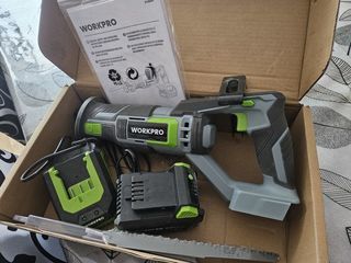 WORKPRO Scie Sabre sans Fil 20V, Scie Sabre à Batterie 4,0Ah, Scie Alternative sans Fil avec 4 Lames de Scie, Idéal pour Couper Bois, Métal et PVC, Batterie et Chargeur Inclus