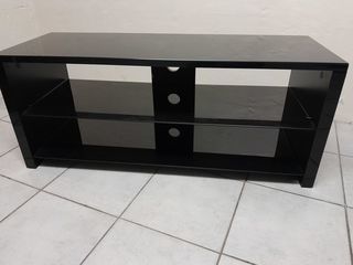 Meuble télévision bois laqué noir et verre fumé. Largeur : 110 ; Profond : 40 ; Haut : 45 Très bon état. A retirer sur place.
