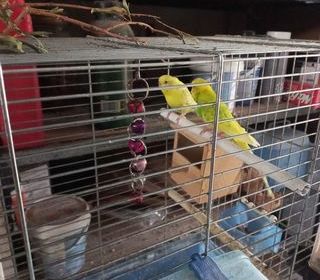 Vends 1 couple de perruches avec leur cage et tous leurs accessoires.