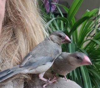Padda de java EAM apprivoisé, 2 mois, sevré, bagué, sûrement des mâles commencent à gazouiller...ils seront comme la photo no 3.