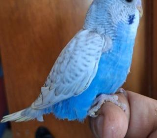 Perruche ondulée de quatre semaines manipulée au nid tous les jours Pour élever à la main ou attendre le sevrage et dans ce cas nourrie par les parents Père tout blanc aux yeux n
