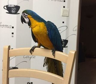 Vend ara bleu mais le premier août 2025 prénommé Sam bague sexe Oiseau élevé avec enfant et animaux sociable adorable Le sevrage est presque terminé