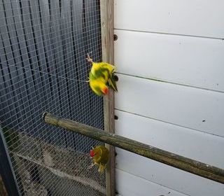 deux femelle kakariki un jaune panaché et une verte avec un peu de plume jaune a 30 euros pieces