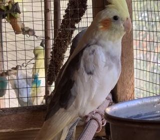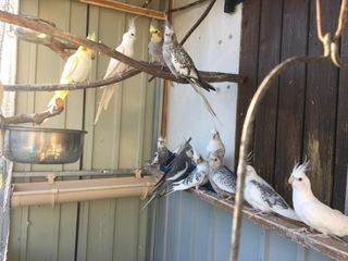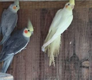 Deux femelles Calopsitte,une jaune opaline et une grise Elles sont nées chez moi en volière extérieure Ce sont les deux qui sont dans le fond sur le grillage 25 euros piece P