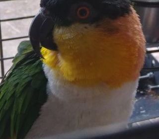 Vend perroquet Caïque à tête noir avec sa grande cage en très bonne état
