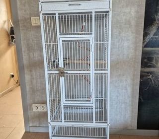 Entièrement neuve jamais servie Cage à Oiseaux en Métal sur Pied avec roulettes - Volière Sécurisée avec Toit Amovible, Perchoirs & 4 Roulettes - Habitat Spacieux pour Perruches