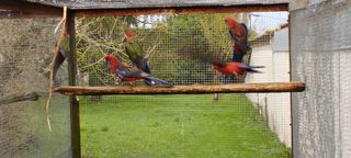 Barraband mâle et femelle bagués an 25 NPE en volière.
